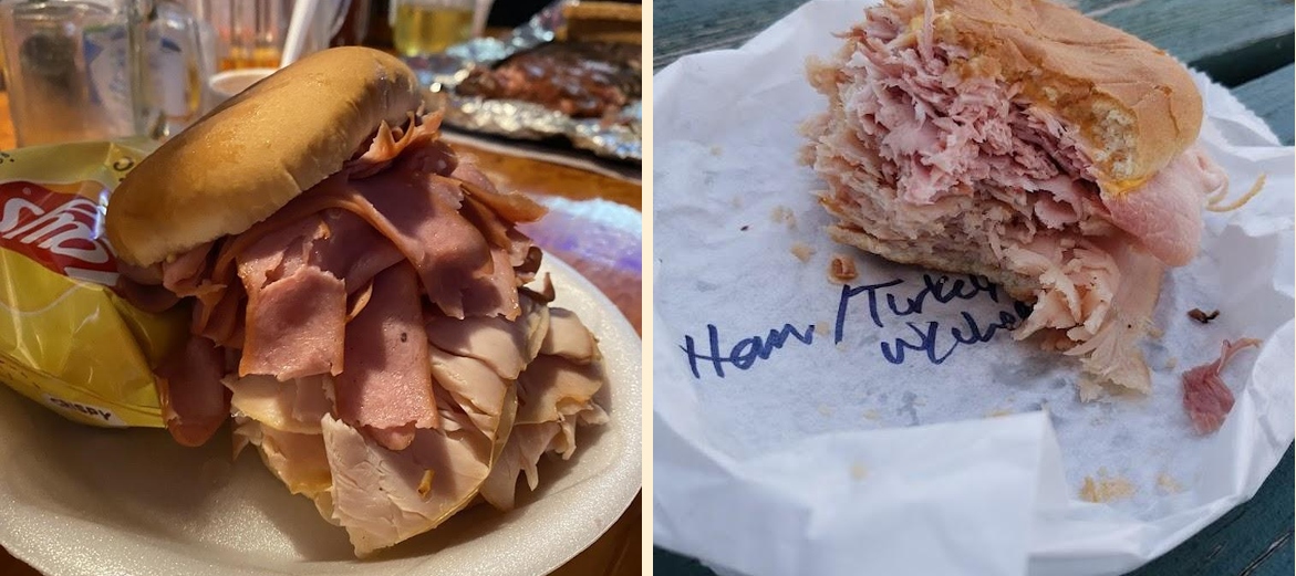 You must try the full slab of ribs; it's a menu highlight. Pair it with homemade sides like potato salad or coleslaw. Don't forget dessert— the apple butter cheesecake is a sweet way to end your meal!